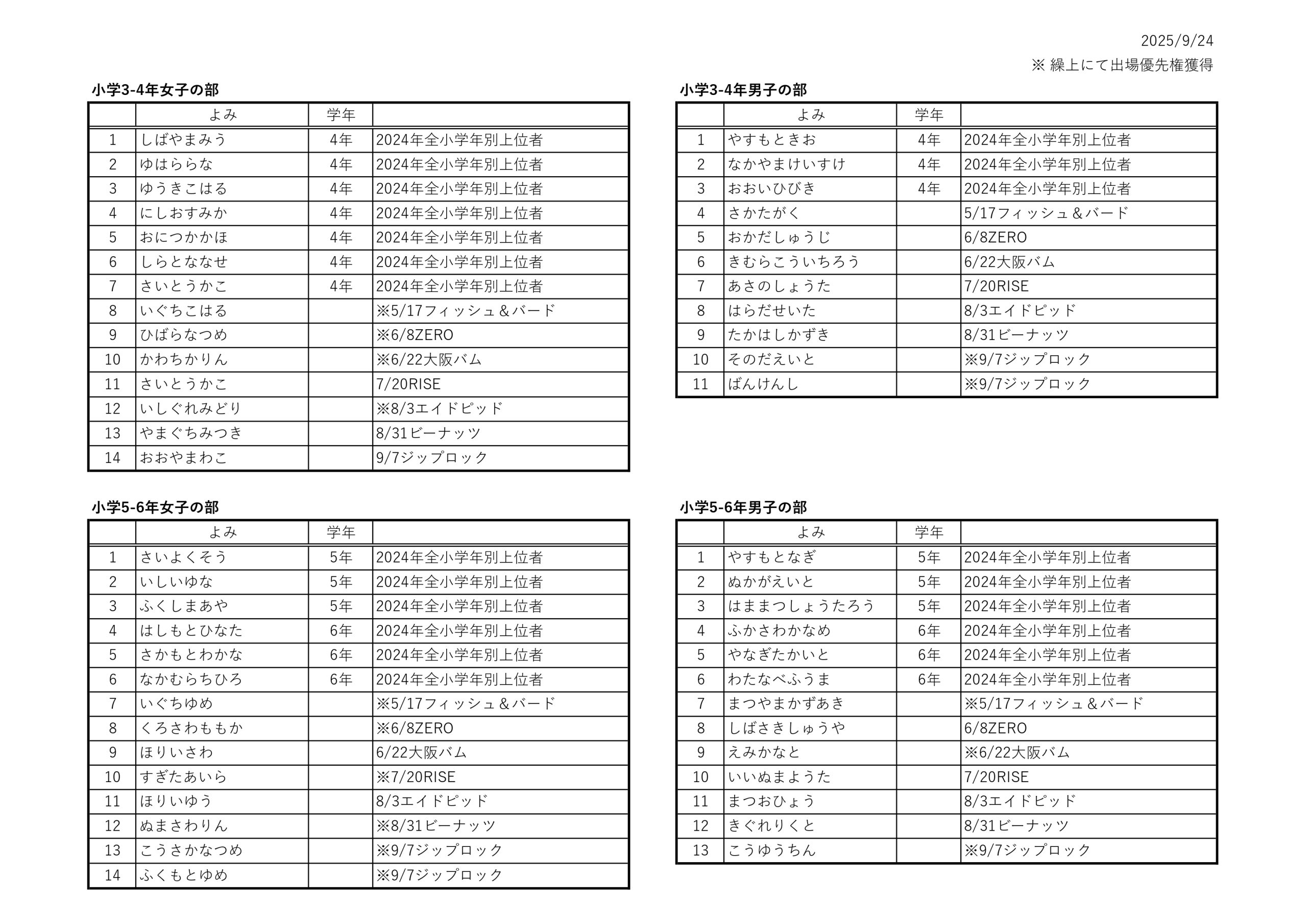 出場優先権の獲得者を発表します。名簿は こちら からご確認いただけます。
